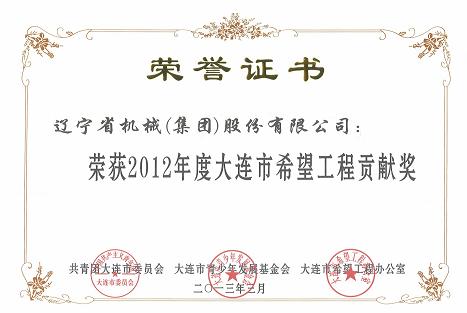 3月28日,由共青团大连市委、大连市青基会、市希望办组织召开的 “爱心成就未来—2012年大连市希望工程爱心助学大会” 在大连市委四楼多功能大厅召开。集团公司荣获“2012年度大连市希望工程贡献奖”称号。这是集团公司继2012年之后第二次获此殊荣。